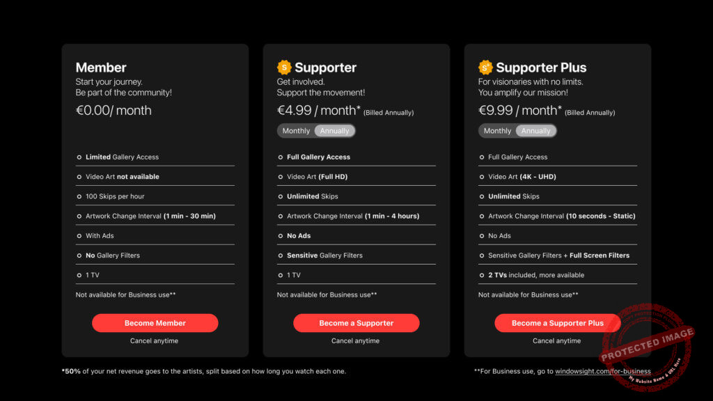 - 3 membership plans for private use: the Member, Supporter, and Supporter Plus accounts.