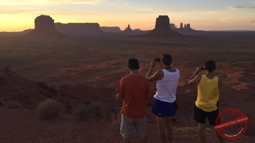 Joan Rosset, Oriol Rosset, and Pol Rosset watching the sun set over Monument Valley Navajo Tribal Park.